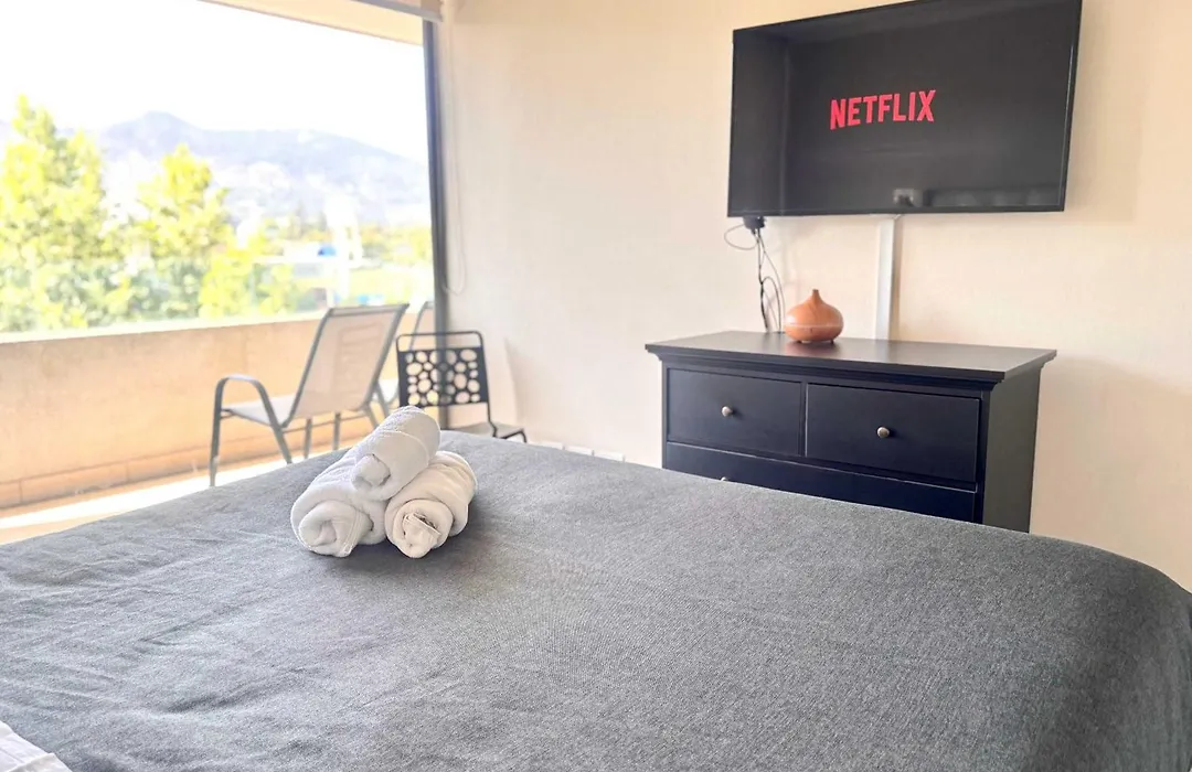 Parque Arauco & Clinica Alemana Con Parking Apartment ensures your comfort by providing a fully-fitted kitchen with an electric kettle, a fridge, and kitchenware. Arturo Merino Benitez airport is at a 27-minute driving distance, and Cerro Colorado / Manquehue Norte bus stop is in close proximity to the accommodation. A patio with views of the pool is also provided.