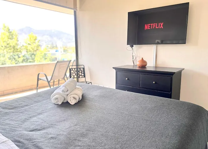 The apartment comprises a patio and a living room and features views of the city. At the property, guests will enjoy the convenience of a hair dryer in the bathroom.